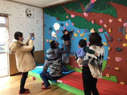 さて本日、11月29日(土)、12月6日(土)の発表会に向けて、お遊戯室にステージを出しました。子ども達がお昼寝をしている時間帯にステージを出したので、お昼寝から起きた子ども達はお遊戯室の変化に驚いていました。また先週の土曜日の段階でクライミングウォールにカーテンが掛けていたので、2段階での「びっくり」だったようです。