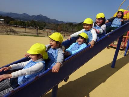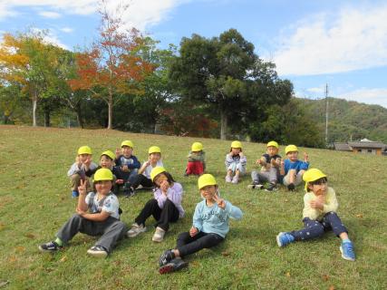 10月とは思えない青空の下、らいおん、きりん、ぱんだ組の子ども達がバスに乗って与謝野町にある「阿蘇シーサイドパーク」に行きました。3歳児クラスのらいおん組さんにとってクラスの子ども達だけで乗る路線バスはとても楽しみにしていたようで、うれしさを隠しきれないようでした。バスから降り、公園までのあるいていると、正面に一面の海(本当は内海ですが…)が見えると、子ども達は一斉に歓声を挙げていました。以前から一度は行ってみたかった公園でもあり、実際に遊んでみると、公園はとても広く且つ緑豊かで大型遊具はもちろん、鬼ごっこなどで走り回って遊ぶ子も大勢いました。