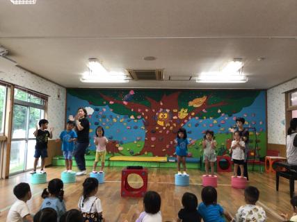 今週1週間はお盆の週という事で登園する子の人数が少ない状況でしたが、来週から通常の保育に戻り、プールも行います。是非子供たちの日焼けした元気な顔を見せてほしいものです。そしてお盆の間、家族と過ごした楽しかった思い出話をたくさん聞ける事を楽しみにしています。