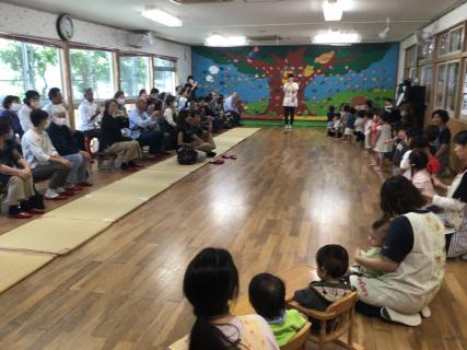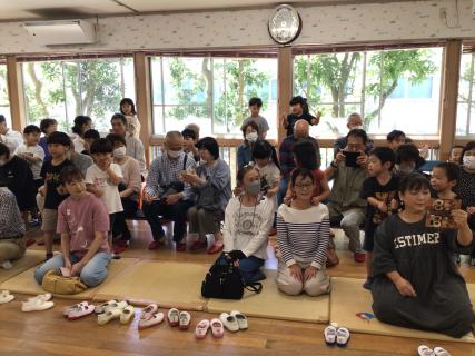 今日は生憎の雨降り日でしたが、本当に大勢の方に保育園まで足を運んでいただき、会場であるお遊戯室に入りきれない方もでるほどの状況でした。これまで運動会の練習が主であり、祖父母参観のための練習はあまりできていなかったのですが、子ども達は大好きなおじいちゃん、おばあちゃんのために歌や踊りを披露する事ができました。全体の発表の後は、各クラスに分かれ、それぞれふれあい遊びを行いました。またお手玉や紙遊び、ぶんぶんゴマを作ったりするクラスもありました。とても楽しい時間となり、あっという間に時間が過ぎたような気がします。見に来られた方にとっても、また子ども達にとっても楽しい参観日となりました。お忙しい中、祖父母参観にお越しいただき、本当にありがとうございました。