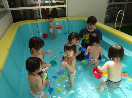 この夏、お天気続きでほぼ毎日のように入っていたプールですが、今日が最終日でした。台風の後であり、天気が心配しておりましたが、「台風一過」の言葉とおり、良く晴れ、最高のプール日和となりました。最後のプールということいつもプールの水を多めに、そして長めにプールに入りましたが、プール遊びが名残惜しいのか、「プールから上がって、シャワーをするよ」との声掛けに対してもなかなプールから出れないクラスもありました。7月21日から約1月間プールを行いましたが、その間に服の着脱やプールの準備など一人でできるようになりました。また大きいクラスでは水に顔をつけることが出来るようになった子もたくさんできました。そしてなにより30度を超える暑い日の中、入った水の心地よさは最高で体をいっぱい動かして遊ぶ事が出来ました。明日からはプール遊びは行いませんが、まだまだ暑い日が続きます。汗をかいた日にはシャワーを行っていきたいと思います。