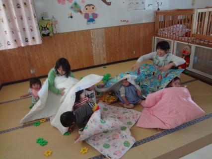 行きは元気よく歩いた子ども達ですが、やはり練習を終えた後での保育園への帰りの行程は疲れが出たようで、その歩調もゆっくりとなり、子ども達はご飯を食べた後、すぐにお昼寝をしました。