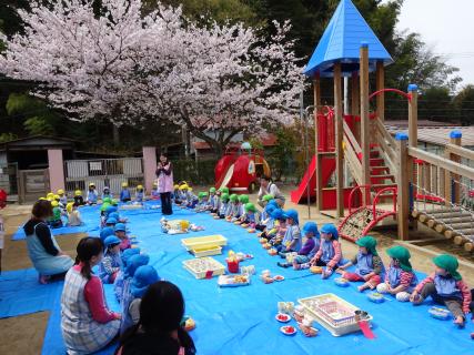 今日は「小遠足」の日、全クラスの子ども達が滝上公園まで歩きました。それぞれのクラスが自分達のペースで歩いたのですが、これまで散歩などで歩く練習をしていた事もあり、全クラス見事歩き切る事ができました。いつもより早く出発できたこともあり公園に早く着く事ができ、その分公園の大型遊具でたくさん遊ぶ事ができました。またぱんだ組さんは「滝上山展望台」まで登りました。山登りの間はとても大変でしたが、そのぶん展望台からの景色はとてもきれいでした。そして「小遠足」の一番の楽しみ、お家の方が作ってくれた「お弁当」、みんなで屋外で食べた事もあり、皆「おいしい、おいしい」と言って楽しく食べる事ができました。クラスの皆と一緒に歩いた「小遠足」、歩き切った達成感は、きっと今後の活動への自信となることでしょうね。
