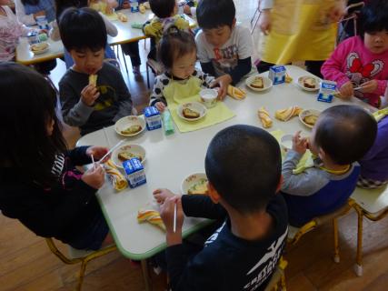 なにより今日はそれぞれのクラスでお昼ご飯を食べたのですが、メニューが子ども達が大好きなカレーライスであった事もあり、皆笑顔で、和気あいあいの昼食となりました。