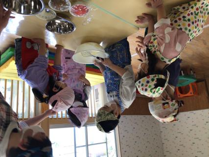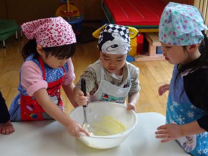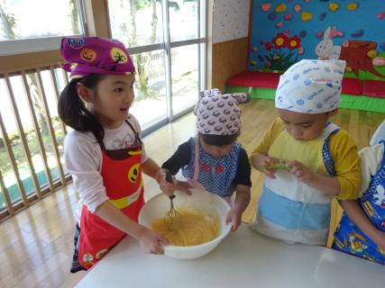 9月のクッキングは「旬の果物を使った物を」という事で、『梨マフィン』を作りました。そのまま食べてもおいしい梨ですが、各グループ「昨日も梨食べたで」「切った梨の皮がヘビみたい」と賑やかにクッキングを行う事が出来ました。出来上がったマフィンはとても甘くて美味しかったです。