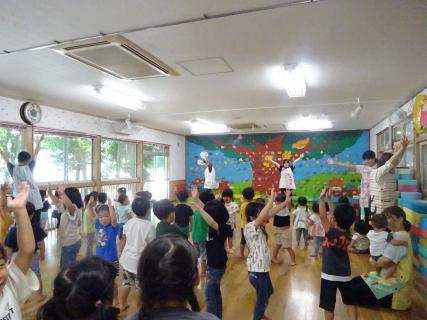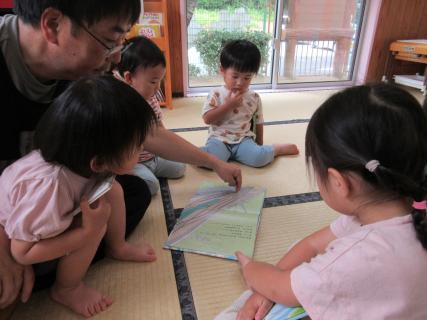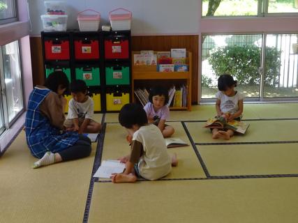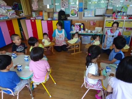 今週1週間はお盆の週という事で登園する子の人数が少ない状況でしたが、来週から通常の保育に戻り、プールも行います。是非子供たちの日焼けした元気な顔を見せてほしいものです。そしてお盆の間、家族と過ごした楽しかった思い出話をたくさん聞ける事を楽しみにしています。