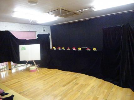 さて本日、11月29日(土)、12月6日(土)の発表会に向けて、お遊戯室にステージを出しました。子ども達がお昼寝をしている時間帯にステージを出したので、お昼寝から起きた子ども達はお遊戯室の変化に驚いていました。また先週の土曜日の段階でクライミングウォールにカーテンが掛けていたので、2段階での「びっくり」だったようです。