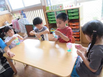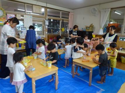 お盆明けの今日、子ども達は日焼けした元気な顔を見せてくれました。もっぱらの話題は「お盆の間に遊びに行ったり、ごちそうを食べた話」や昨日実施された「花火大会の話」で盛り上がっていました。どの子も大変充実したお盆を過ごす事が出来たようです。
