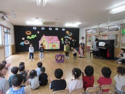 今日は乳児クラスの子の発表会の日でした。子ども達はステージに立ち、少し緊張しながらも唄や踊りなど大勢の人の前で発表する事ができました。ステージに立つ姿を通して、子ども達の大きくなった姿を見ていただく事ができました。今日は子ども達が親からたくさん褒めてもらい、愛されていると感じられる日となる事を願っています。来週は幼児クラスの発表会が行われます。