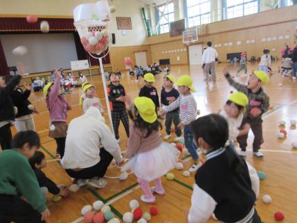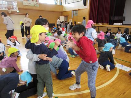来年度 小学校に進学する年長児と、現宮津小学1年生との交流会が、宮津小学校で行われました。月曜日には 年長児の子ども達は宮津幼稚園でお会いしていたのですが、今回は小学校が会場、広い体育館に年長児と小学1年生集まって、「進化じゃんけん。玉入れ」を行いました。この3月に保育園を卒園した子達が立派なお兄さん・お姉さんになっており 優しく接してくれました。保育園に帰ってくるなり、「楽しかった」と小学校への憧れの気持ちがさらに高まったようです。
